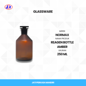 Reagen Bottle Amber 250 ml untuk penyimpanan cairan sensitif di laboratorium.