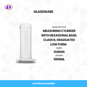 Measuring Cylinder Duran 1000 ml dengan dasar heksagonal dan akurasi tinggi.