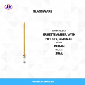 Burette Amber Duran 25 ml dengan PTFE key untuk titrasi presisi.